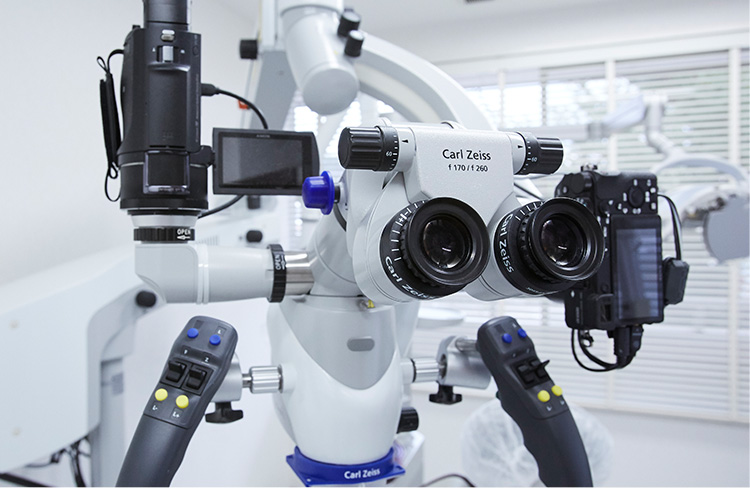 歯科用の手術用実体顕微鏡のマイクロスコープを使用すると、患部を約20倍に拡大することができるため、精密な歯内療法(根管治療)を行う専門医にとってはマイクロスコープを使いこなすことが必須となり、治療精度が大幅に向上します。