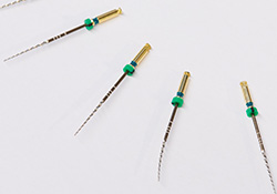 根管は肉眼では捉えられないくらい細く湾曲しています。ニッケルチタンと呼ばれる弾性の高いしなやかな合金で出来たファイルという針状の器具を使用することで、曲がった根管に沿って治療でき、神経の除去や細菌を取り除くことができます。