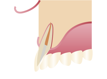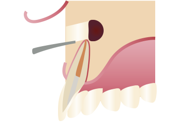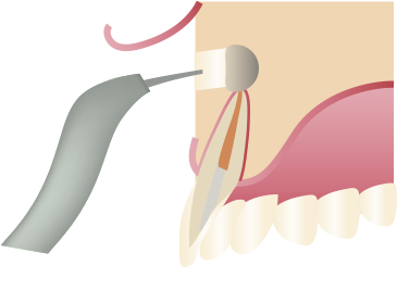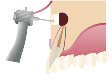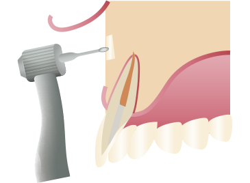 根管の根っこに病巣が発生した場合、歯根の尖端部分の根尖病巣(歯根嚢胞、歯根肉芽腫)を切除して細菌の温床である歯根の先端部を削除します。根管治療でも症状が改善しない場合や、根尖病巣が大きく、根管治療で根治できない場合に行います。