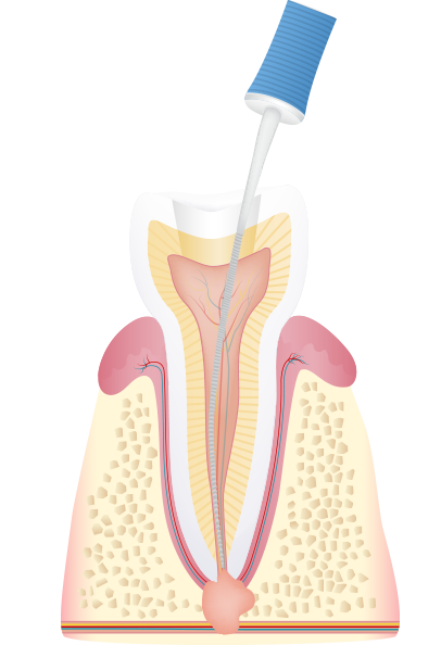 細菌で変質してしまった神経を除去し、神経の通っている穴と根管の中をきれいに清掃します。